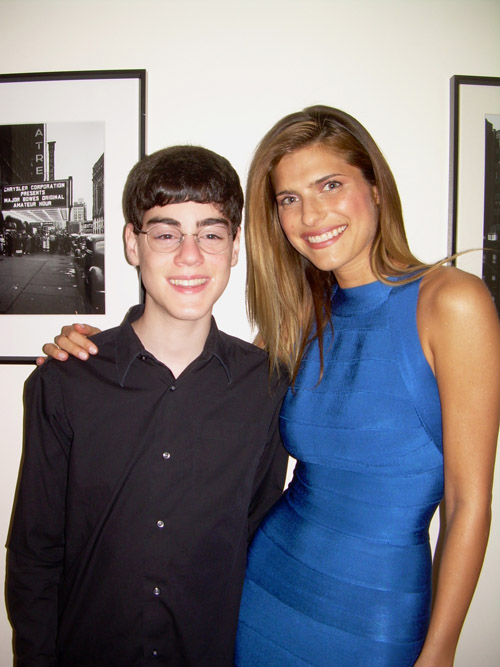 The sound engineers called the band upstairs to the sound studio to listen to the playback of their sound check run through to make sure everyone was happy with the levels, etc. It was really cool to see the massive mixing boards and to listen to the playback of the sound check. The guys were pleased. Then the band had the afternoon off, with plans to return to the studio around 6:00 PM. That was when everyone really started getting excited. We were given two green rooms. It was cool to see stickers from previous bands stuck to the mirror there. We had thrown away our name tags, so we couldn’t add The Matt Savage Trio to the collection. Maybe next time… The guests on the show were Bill Cosby and Lake Bell. We never saw Bill Cosby backstage, as he was in his room preparing for his appearance. Lake, however, was in the room just down the hall. After she was done in makeup, she came down and said hello to Matt. I must say that Matt had a BIG smile on his face! Lake is very nice and VERY beautiful. I took a photo of Matt posing with Lake. Joe handed me his camera and had me take a photo of him with her too. Lake was very nice to give some time to the guys. It certainly made THEIR evening brighter!