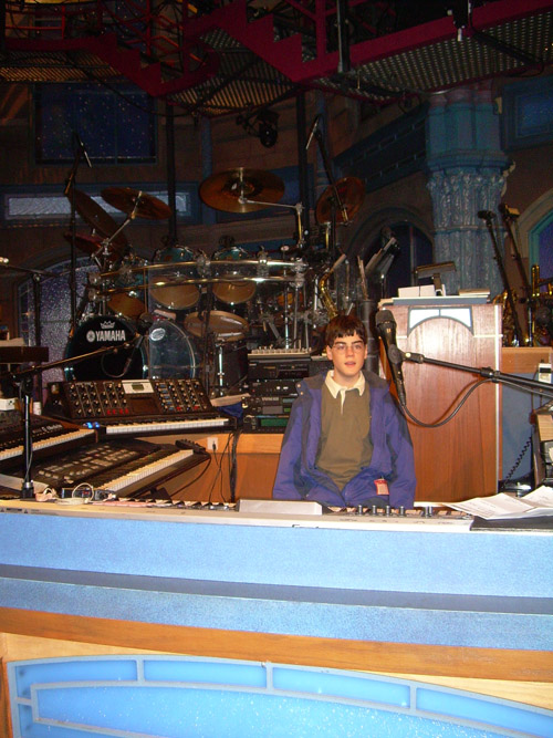 After sound check, however, the producers invited Matt to check out David Letterman’s desk and Paul Shaffer’s performance area. Matt sat at the desk and I sat in the interview seat and Matt pretended to interview me. It was fun. Then he checked out all the equipment at Paul Shaffer’s spot, admiring all the keyboards and electronics surrounding him.