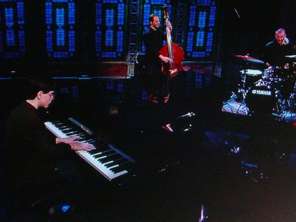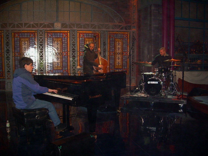 On January 29th, 2008, Matt and his NY-based Trio (bass player Dave Robaire and drummer Joe Saylor) was the featured musical act on the “Late Show with David Letterman.” As you might imagine, this was exceptionally exciting for all the musicians! They chose to perform Matt’s composition, “El Fuego.” Matt actually wrote the song several years ago and recorded it on his 2003 album, “Chasing Your Tail.” But it is a really upbeat and fun song. The Trio re-recorded it for their new “Hot Ticket: Live in Boston” CD. Obviously, the song sounds completely different now that Matt has matured in his musical abilities. And Matt has really taken an interest in Latin music. It seemed like a good, upbeat choice from the new CD to perform on the “Letterman.” The Trio had only 3 minutes-3:15 minutes to perform a jazz tune. As you know, jazz songs are usually MUCH longer in length. Matt wanted to perform an upbeat song, but having to fit it into such a short amount of time was difficult. “El Fuego” is a 7 minute song on the CD. Essentially, the band had to cut it in half to fit the allotted time. It was easier for them to perform “Curacao” on “Late Night with Conan O’Brien.” On that show the band had 4 ½ minutes to perform. That extra minute made a lot of difference in the band’s ability to sculpt the song. It was actually a very long day for the Trio, although it was an even LONGER day for the folks who produce the Letterman show. The show does not tape on Fridays, so every Monday they tape TWO shows…Monday’s show and Friday’s show. On this particular Monday, January 28th, however, the producers filmed Monday’s show and Tuesday’s show. We think it had something to do with the fact that it was SWEEPS week. Anyway, they taped Monday’s show from 5:00-6:00 and Tuesday’s show (on which Matt appeared) from 7:00-8:00 PM. Lisa Feldmann and her husband Gerhard (from Bösendorfer New York) had to arrive at the studio at 7 AM Monday morning! They delivered the beautiful Bösendorfer piano and got it ready and tuned. Joe needed to arrive at 8 AM to set up his drums. Dave arrived at around 9 to set up his bass. And Matt and I arrived at around 11. Sound check ran from 12-1. During this time the band performed their selected song a few times to make sure the song fit the allotted time. The camera crew also became familiar with the song so they could anticipate camera angles for the live performance. The band discovered during sound check that the temperature in the studio was about as cold as it was outside. They were freezing, and did the entire sound check in their winter jackets. All the camera people said the studio was always that cold and sometimes even COLDER. They, too, were all bundled up.