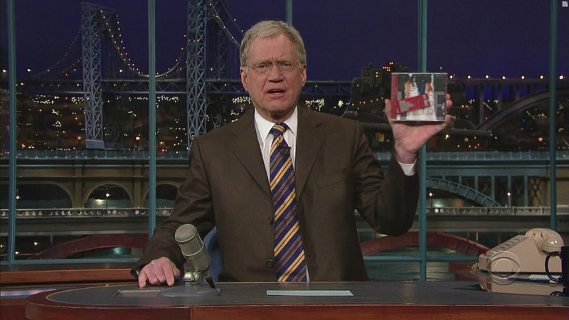 We all watched what was going on live on stage from the green room. Bill Cosby finished his appearance and Lake was shuttled down to make her appearance. As she neared the end of her interview, the Trio was rushed down to get in place. And David Letterman introduced the band and held up their new CD, Hot Ticket: Live in Boston.