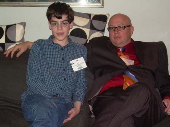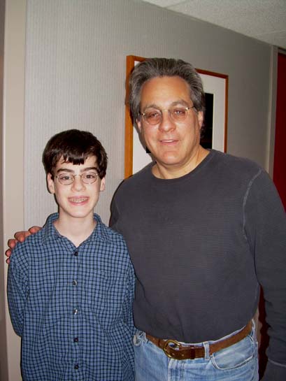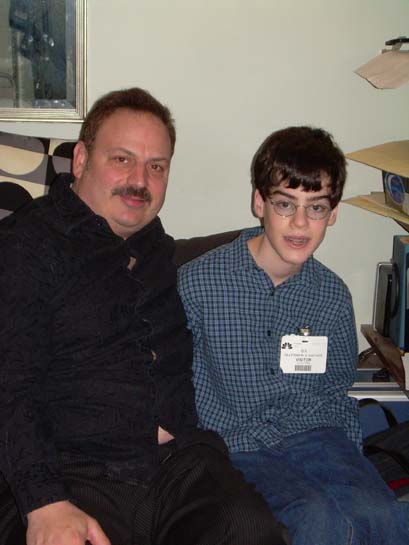 Richie "La Bamba" Rosenberg and Matt Savage On the way back we saw an open door with “The Cats” listed on the nameplate. Sitting there on the couch were all the members of the Max Weinberg 7… Richie "La Bamba" Rosenberg (trombone), Scott Healy (keyboard), Mike Merritt (bass guitar), Mark Pender (trumpet and acoustic guitar), Jimmy Vivino (guitar) and Jimmy's younger brother, Jerry Vivino (a variety of woodwind instruments). THAT was cool. They guys had heard Matt and his sidemen at sound check and were really impressed. They started talking jazz…musicians, songs, great tunes and albums to listen to, different versions of songs to play. They asked Matt about his favorite jazz musicians, and Matt started listing the “old guys”…Oscar Peterson, Art Tatum, Bill Evans, Thelonious Monk. The band members were REALLY excited that Matt was into the same kind of musicians as they…saying that he was definitely on target with his music appreciation. Not a lot of young jazz musicians today choose traditional (bebop/post bop) as their preferred style. But that’s what Matt likes best. He likes MANY forms of jazz, but that is how he describes his love…kind of bebop with modern influences. Matt was really into the discussion with the guys. When he is talking music, he is in his element. I just sat back and smiled, watching all the smiles across the faces of all the guys. We were told it was time for Matt to get on his performance clothes.
