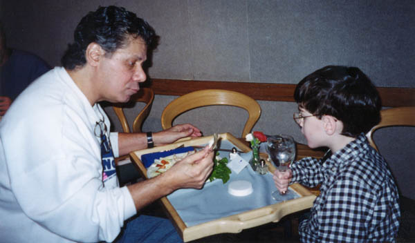 Somewhere in the middle of all this, I managed to get Matthew his autograph. Mr. Corea was trying to sneak in a meal before showtime, so he started eating a salad with chicken. Matthew sat down with him and they talked. Mr. Corea even shared his meal with Matthew and gave him his glass of water. I was sure that Mr. Corea would drop from dehydration during his concert and it would be because he didn’t drink enough fluid before going on-stage. Mr. Corea was sweet, patient, caring, and interested in getting to know Matthew. As a result of this meeting, Mr. Corea has become a friend and supporter to Matthew. Matthew is just beginning his lifelong journey with music, and it’s wonderful for him to have someone who has been through it all and is kind enough to share insight.
