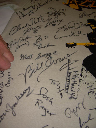 Matt did not have a performance on the 28th, but as a scheduled artist on the 29th, he was invited to play at the nightly jazz jam. He had a blast, listening to a terrific mix of musicians, young and old. And then he performed with a bass player and drummer. The energy at these jazz jams is just amazing. They called Matt up to play around midnight or so. He was cooking, and just gave a smoking performance, beaming at the spontaneous fun he was having with the other musicians. The crowd went wild, and gave Matt a standing ovation. He was asked to perform THREE songs instead of the usual TWO. Afterwards, he needed to take a bathroom break and get some water, so we briefly left the jam. On our way out, Matt was called over to a table at the entrance to the jazz jam. On this table, there was a 2007 Ottawa International Jazz Festival Shirt covered with autographs. The festival organizers asked Matt if he would please add his autograph the shirt. Matt was honored, and looked at all the other autographs already on the shirt, excitedly exclaiming who had autographed… He then looked for a space where he could sign, and wouldn’t you know it, there was a space just above BILL EVANS’ name! Obviously this was another Bill Evans, but STILL...JUST THINKING of Bill Evans was cool. What a special way to remember the artists who have played at the nightly jams at a festival during a particular year! The shirt was REALLY cool. I even photographed it. We called it a night around 1 AM so Matt could get rest before his performance the next day.