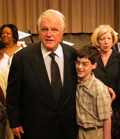 Capitol Hill on June 8, 2006 Meeting Senator John Sununu (R-NH) and Senator Ted Kennedy (D-MA) Matt performed at a reception on Capitol Hill as part of the VSA “Start with the Arts” Festival. It’s cool to be on Capitol Hill. The building itself resonates history, and you see faces you recognize from the news just walking on by you in the halls. We were honored to receive an invitation from one of our state's senators to visit him in his office on the Hill. We traipsed over to Senator Sununu’s office and received a warm reception. He spoke with us for a bit and posed for a photo. We chatted with the staff members in his office. The Senator could not attend the VSA reception, as he was headed back to NH, but we appreciated his having taken the time to meet us. It’s not every day that one’s Senator extends an invitation to visit him. After the visit with Senator Sununu, it was off to the VSA reception, where Matt performed for Members of the House and Senate. One of the most recognizable faces there was Senator Ted Kennedy (D-MA). Although he was suffering from a painful back, he greeted people and shook hands and congratulated the VSA artists being honored at the reception. We spoke with him briefly, but did not want to stress him physically. Meeting him still made an impression on Matt, who was familiar with the Kennedy name. Matt played one of his original compositions to kick off the reception and received cheers along with applause. It was a wonderful reception to honor several extremely talented young artists, and Matt was honored to be a part of the event.