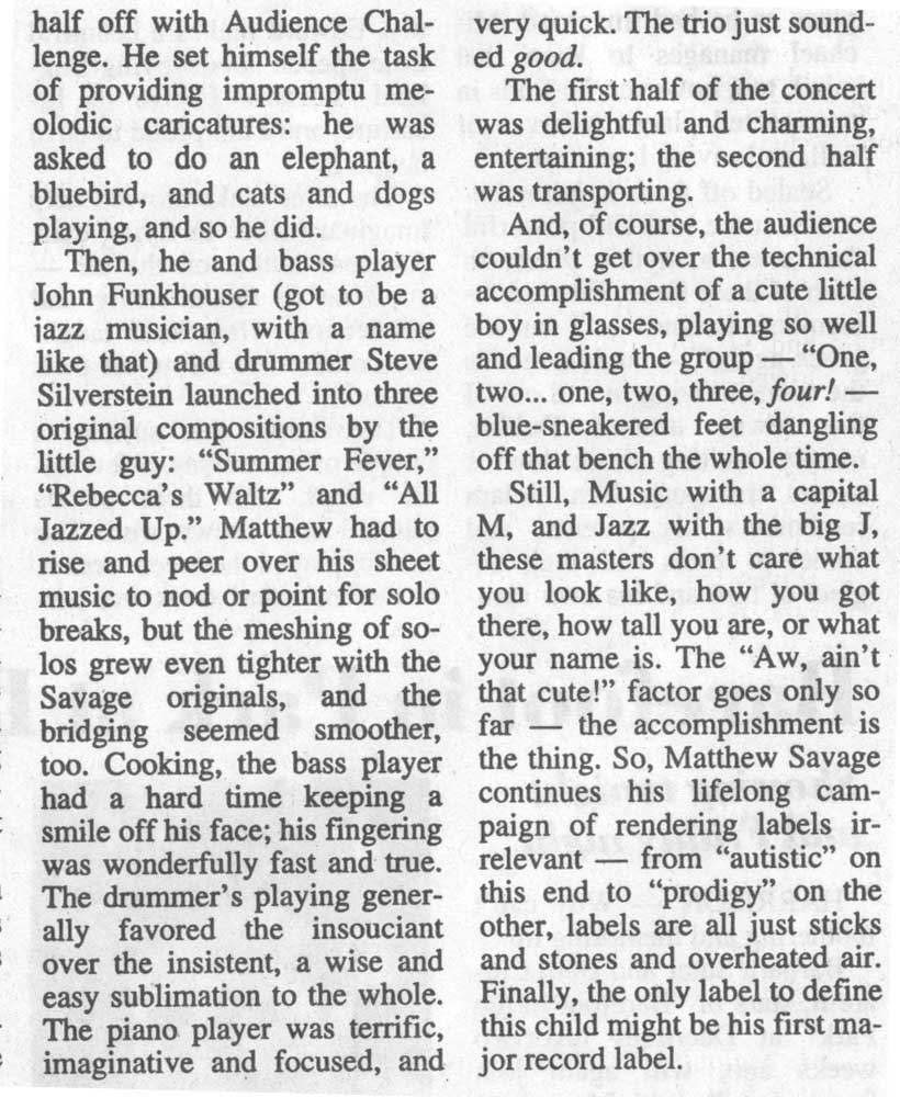 Review of Deertrees Performance, August 19, 2001