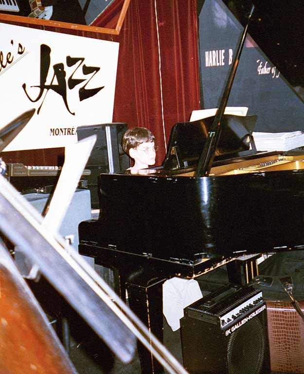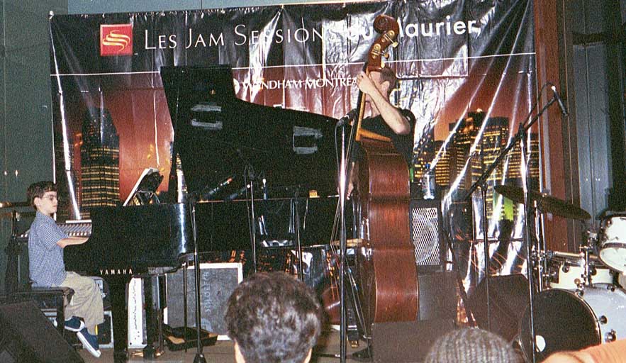 We were able to hear some great acts while we were there. We heard Medeski, Martin and Wood, as well as Metalwood, the group who opened for them. They are very experimental in their music, so it was really cool to hear a kind of jazz we had never before experienced. We also heard Michael Brecker on sax, accompanied by Larry Goldings on the Hammond B3 organ, Bill Stewart on drums, and Adam Rogers on electric guitar. Boy was I glad we got to hear them! Matthew and I both REALLY enjoyed the concert. All four musicians put out such incredible effort in their playing that they were winded. All of us in the audience were the lucky listeners who benefited from their incredible individual talents combined. Great concert! And finally, we saw The Afro-Cuban All Stars with Juan De Marcos Gonzales. That was an amazing event. The group is huge, with at least a dozen or more members, both old and young. The music they play is phenomenal, true to their heritage, rhythmic and seductive. We REALLY enjoyed hearing them! We also heard several outdoor concerts (or parts of concerts) that were great. We heard S.O.U.L., El Fuego, and several others, but I forgot their names. Sorry. We tried to see many different kinds of jazz…expand our jazz horizons and learn more about what’s out there. But I have to admit there was one thing that was frustrating. There were SO many musicians we wanted to hear and couldn’t. Concerts happened at the same time, so we had to choose one event over another. And there were so many legends we would have liked to have heard but couldn’t get tickets or couldn’t work it out timing-wise. We didn’t want to miss any of the acts, but this, unfortunately, was a physical impossibility. Jazz has the best musicians out there. We would have LOVED to hear more concerts. We would have loved to hear Oscar Peterson, among others… and musicians who heard a little boy playing at a jazz jam but who we DIDN’T get to hear. We are definitely going to make a point of attending their concerts if they come to the Boston area!!!!!! Matthew played at a total of three jazz jams, and received wonderful support and encouragement and tremendous applause and frenzy each time. There were several busloads of people who came up to Montreal from Connecticut for the Jazz Festival. They were some of the most protective, appreciative, and caring folks at the hotel. When Matthew was supposed to play early in the evening at his second jam and kept getting bumped back in time (therefore almost falling asleep), these people took action. They demanded that Matthew be allowed to play next, because they had heard him before and wanted to hear him again (before he fell asleep). I thanked them at the time, but I think no amount of thanks could express the deep gratitude I felt towards them for their kindness and outpouring of acceptance. Matthew also sat in for what was supposed to have been one tune at Biddle’s Café in Montreal, but things went crazy. All the folks in the restaurant got out of their seats, and flocked to see the kid pianist and take pictures and get autographs. The waiters and waitresses couldn’t fight their way through the crowd to serve their customers. It was chaos. Matthew played a second piece amid a huge round of applause. It just astonishes me the effect he has on people!