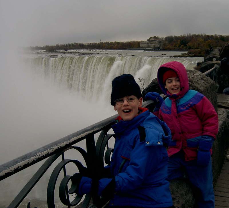 Geneva Centre for Autism, Toronto, ON November 11, 2004 On November 11th, 2004, The Matt Savage Trio performed a gig at the grand Royal York Hotel in their Imperial Room. The concert was for a fundraiser for The Geneva Centre for Autism. We drove to Toronto with the whole family, as the best way to drive to Toronto is right past Niagara Falls. We weren’t about to miss the opportunity to visit the falls!!! We left on Sunday November 7th and spent the night in Buffalo. Then, on the 8th, we ventured to the falls. Now, as many of you know, the amount of water going over the falls is controlled by hydroelectric dams. By the end of October, some of the water is diverted into making electricity and none of the “tourist” adventures, like the boats or the walkways down to the base of the falls are open. The boats can’t run because of the lowered water level, and the walkways become slippery and dangerous because of the cold air. We knew this before we headed for the falls, but weren’t deterred.