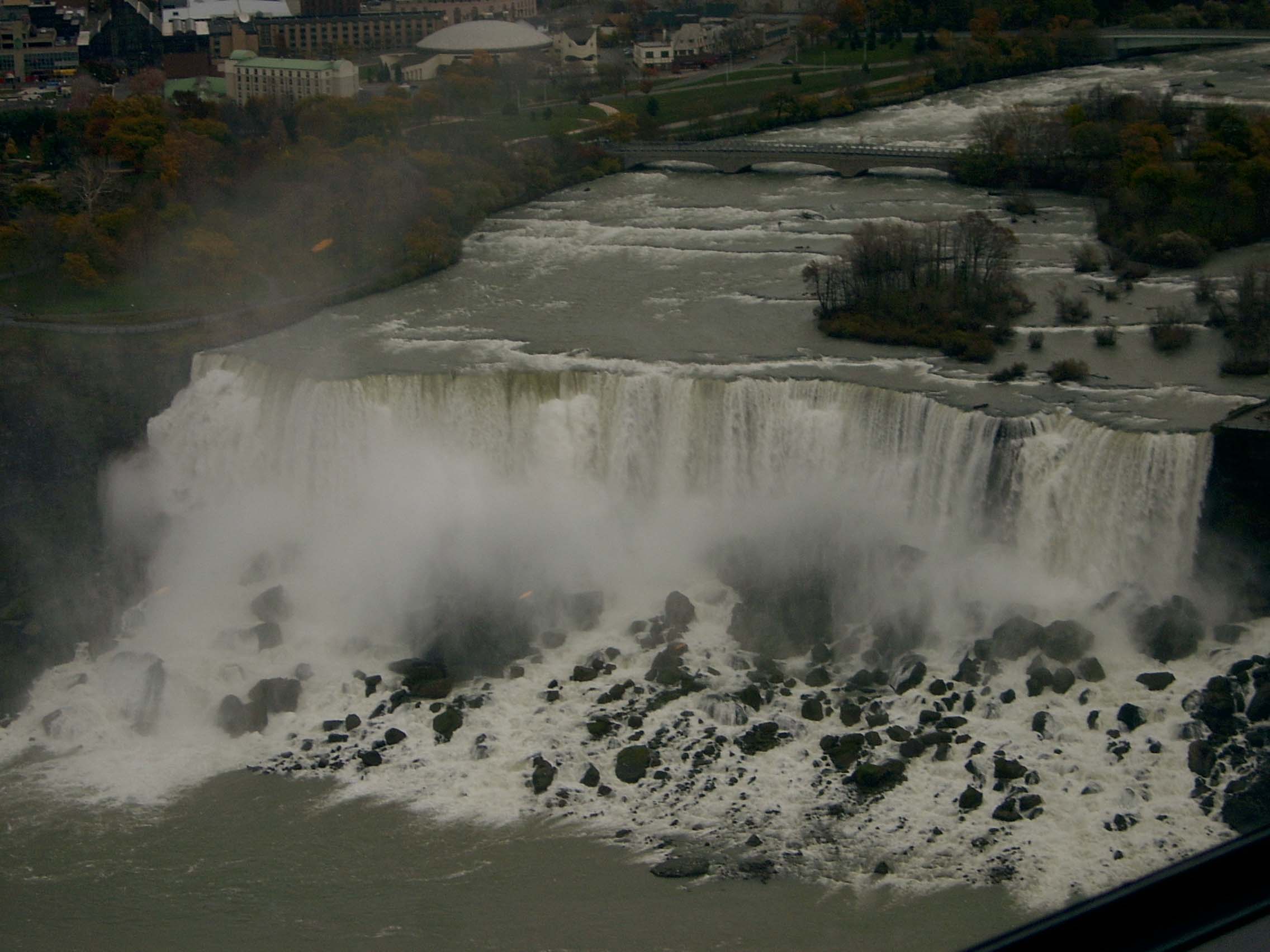 We really wanted to see the falls from the best vantage point, so we went up the Skylon Tower. First we went to the revolving restaurant for a late lunch, as we were starving. It was a GREAT choice, as the temperature was dropping rapidly. We could see snow headed our way. From the restaurant, we were able to eat in warmth and still enjoy the views of the falls and surrounding area as the restaurant revolved.